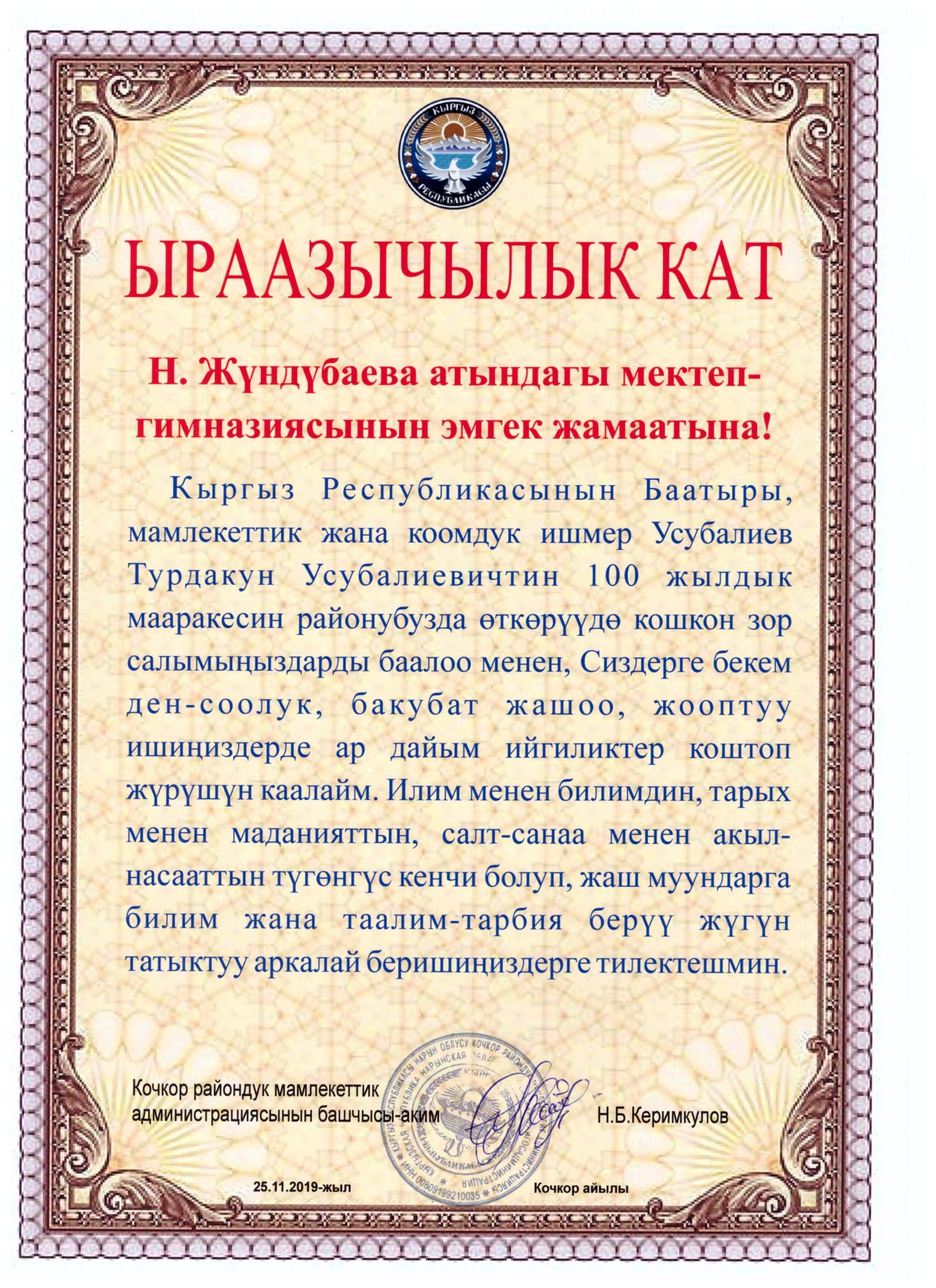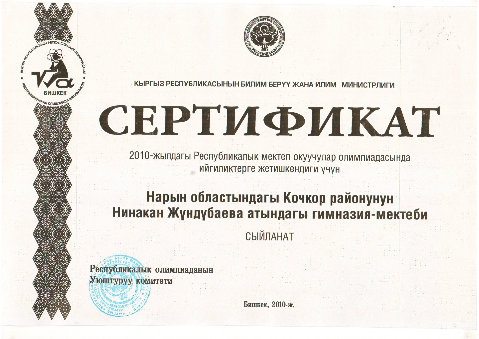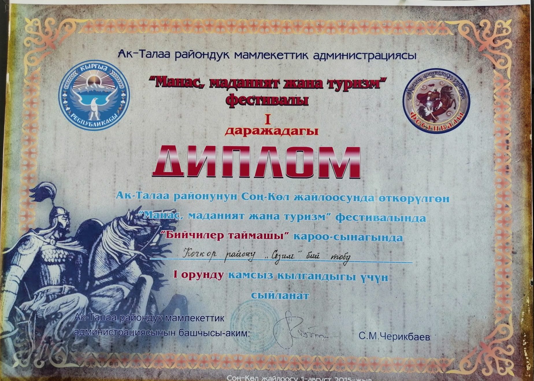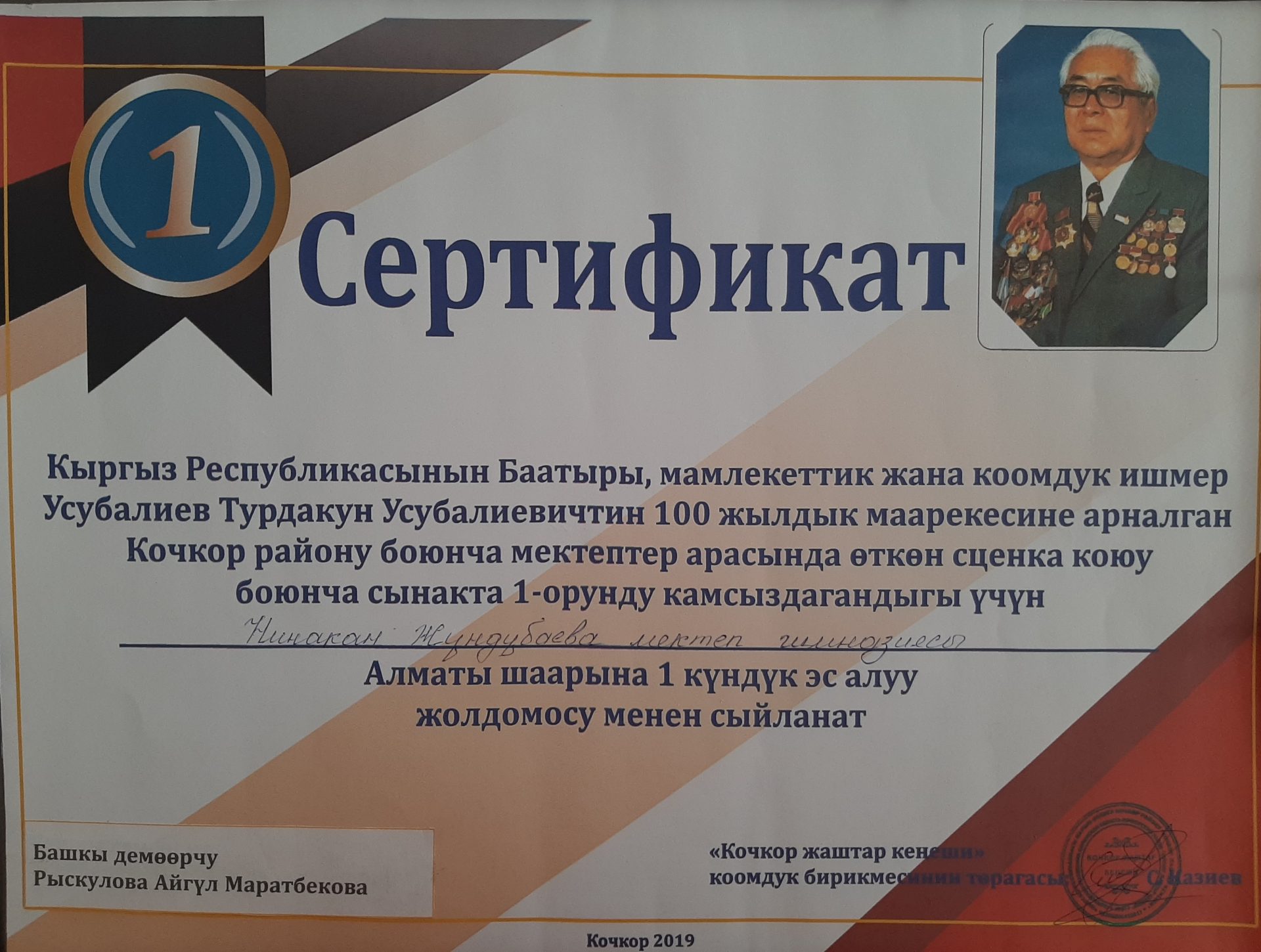 Мектеп - гимназиябыздын 10- классынын окуучу кыздарынан куралган Каныкей тобу быйылкы жылы "Манас таануу" сынагынын республикалык турунда 1- орунду багындырышты. Окуучуларды жетектеп сынакка даярдаган мугалими Сөлпүева Акак Солпуевна болду. Сынакка катышкан окуучуларыбыз баалуу белектер жана диплом менен сыйланышты.Биздин сыймыктуу окуучуларды, кыргыздын көөнөрбөс булагы болгон Манас эпосун окуп, изилдеп, сынактарда башкы орунду камсыздап жаткандыгы менен куттуктайбыз жана сыймыктанабыз.