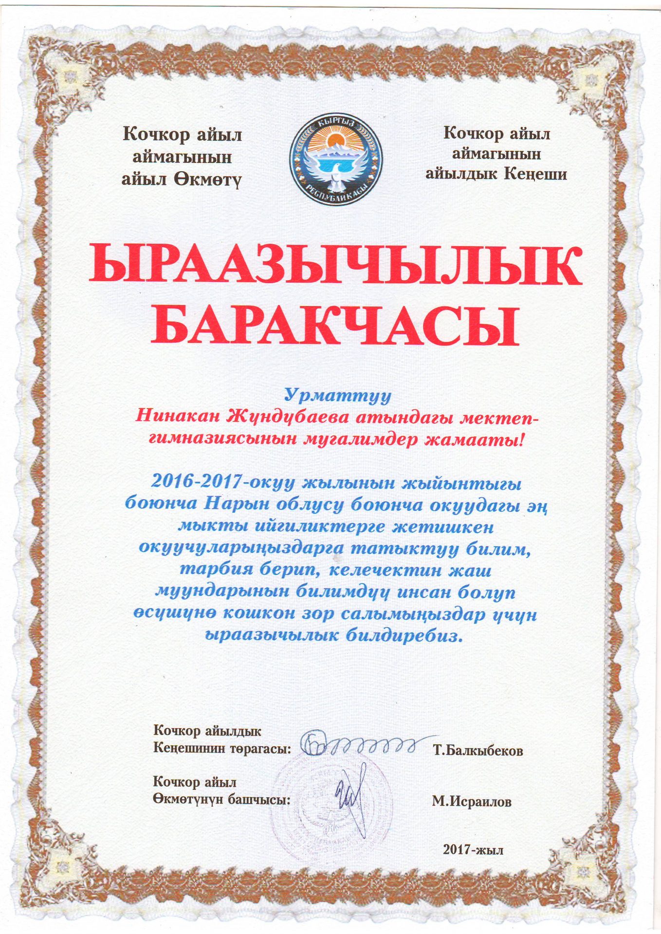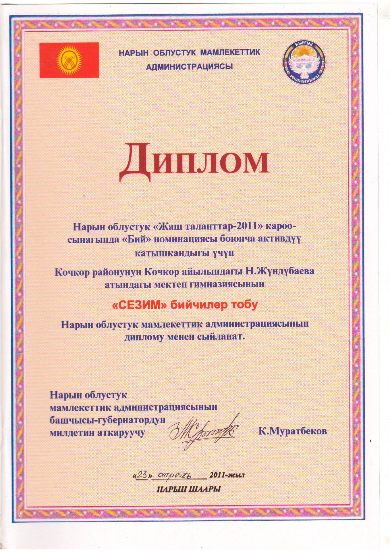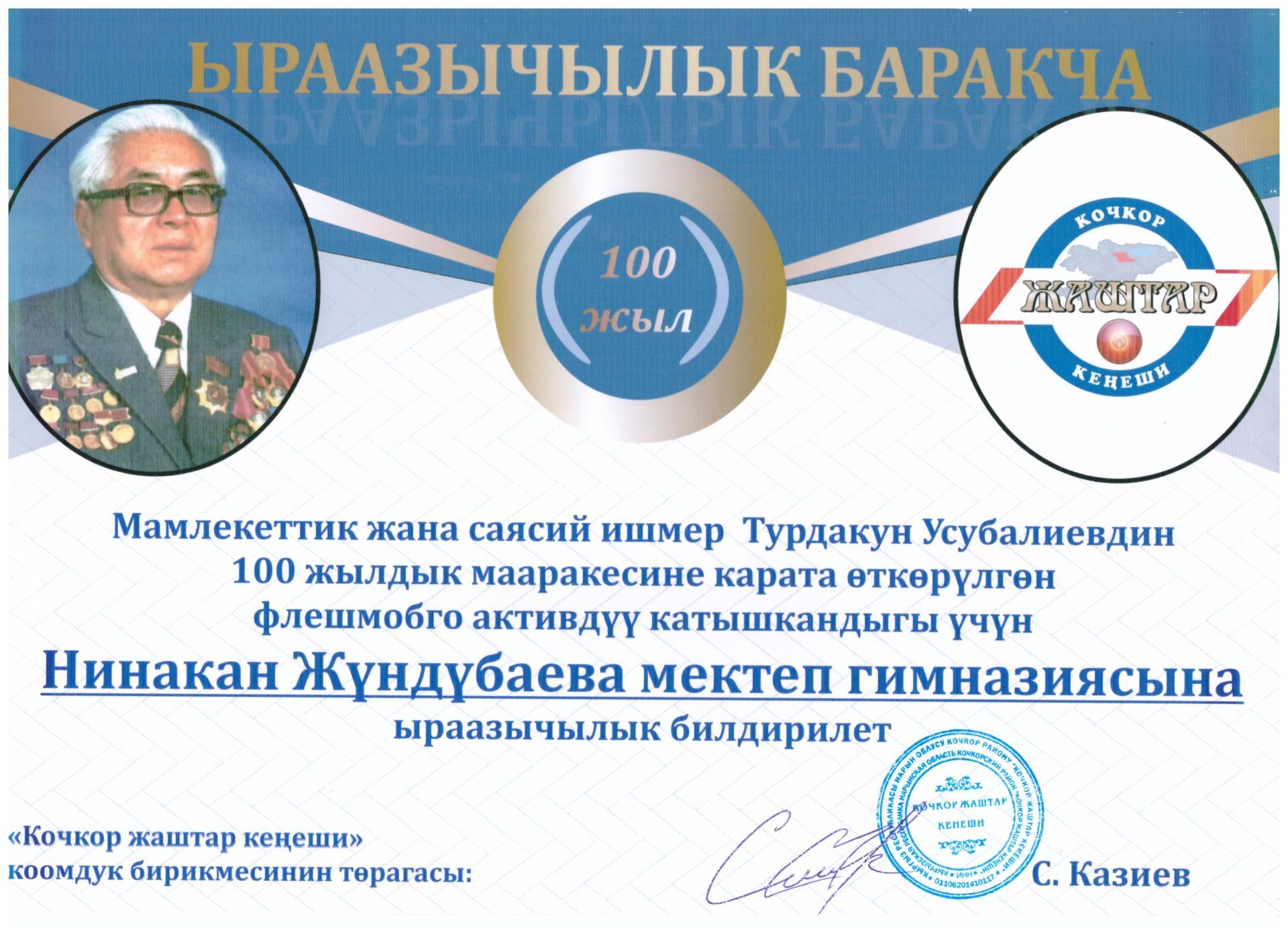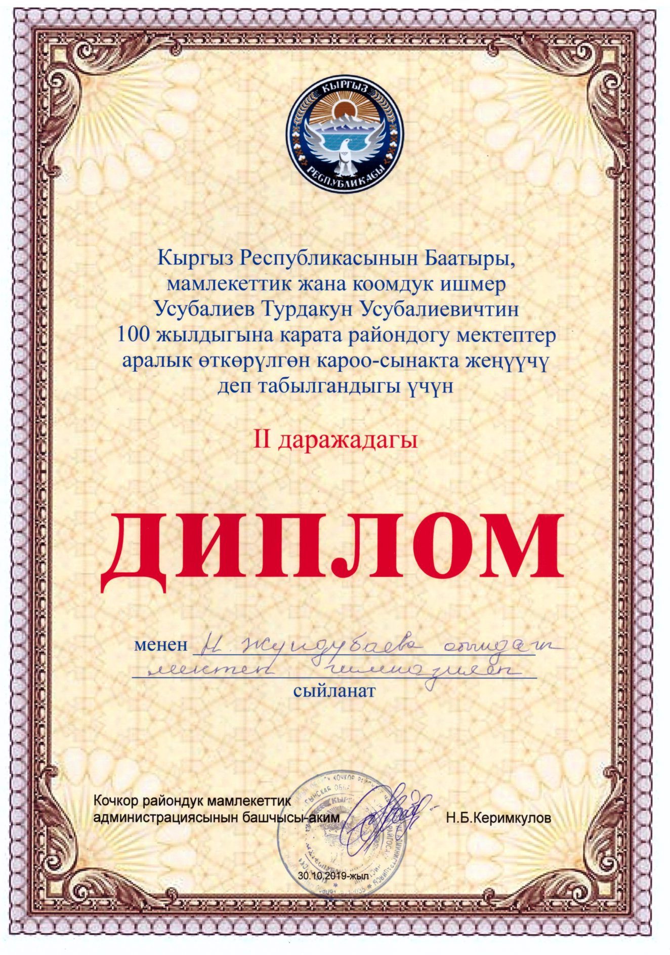 Мектеп - гимназиябыздын 10- классынын окуучу кыздарынан куралган Каныкей тобу быйылкы жылы "Манас таануу" сынагынын республикалык турунда 1- орунду багындырышты. Окуучуларды жетектеп сынакка даярдаган мугалими Сөлпүева Акак Солпуевна болду. Сынакка катышкан окуучуларыбыз баалуу белектер жана диплом менен сыйланышты.Биздин сыймыктуу окуучуларды, кыргыздын көөнөрбөс булагы болгон Манас эпосун окуп, изилдеп, сынактарда башкы орунду камсыздап жаткандыгы менен куттуктайбыз жана сыймыктанабыз.