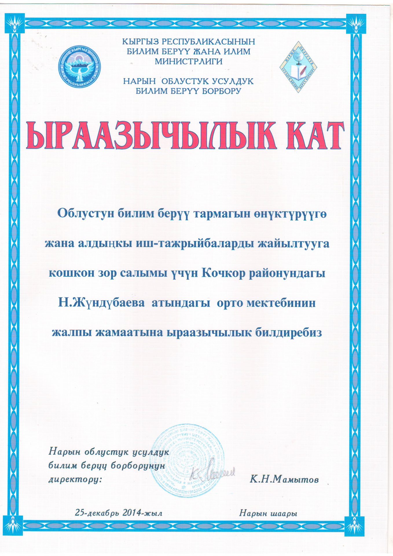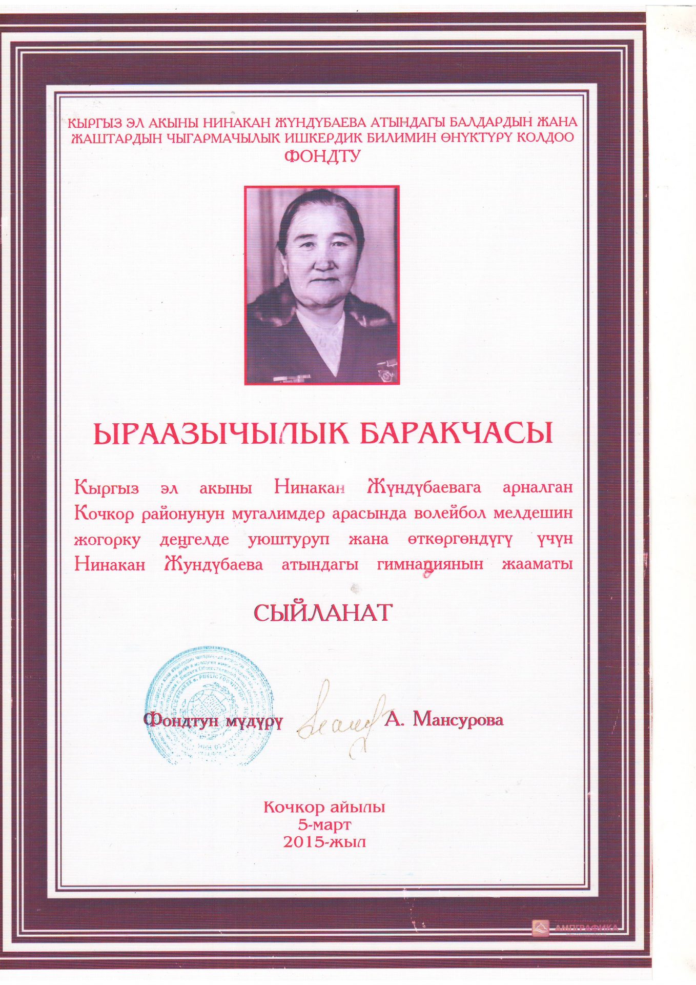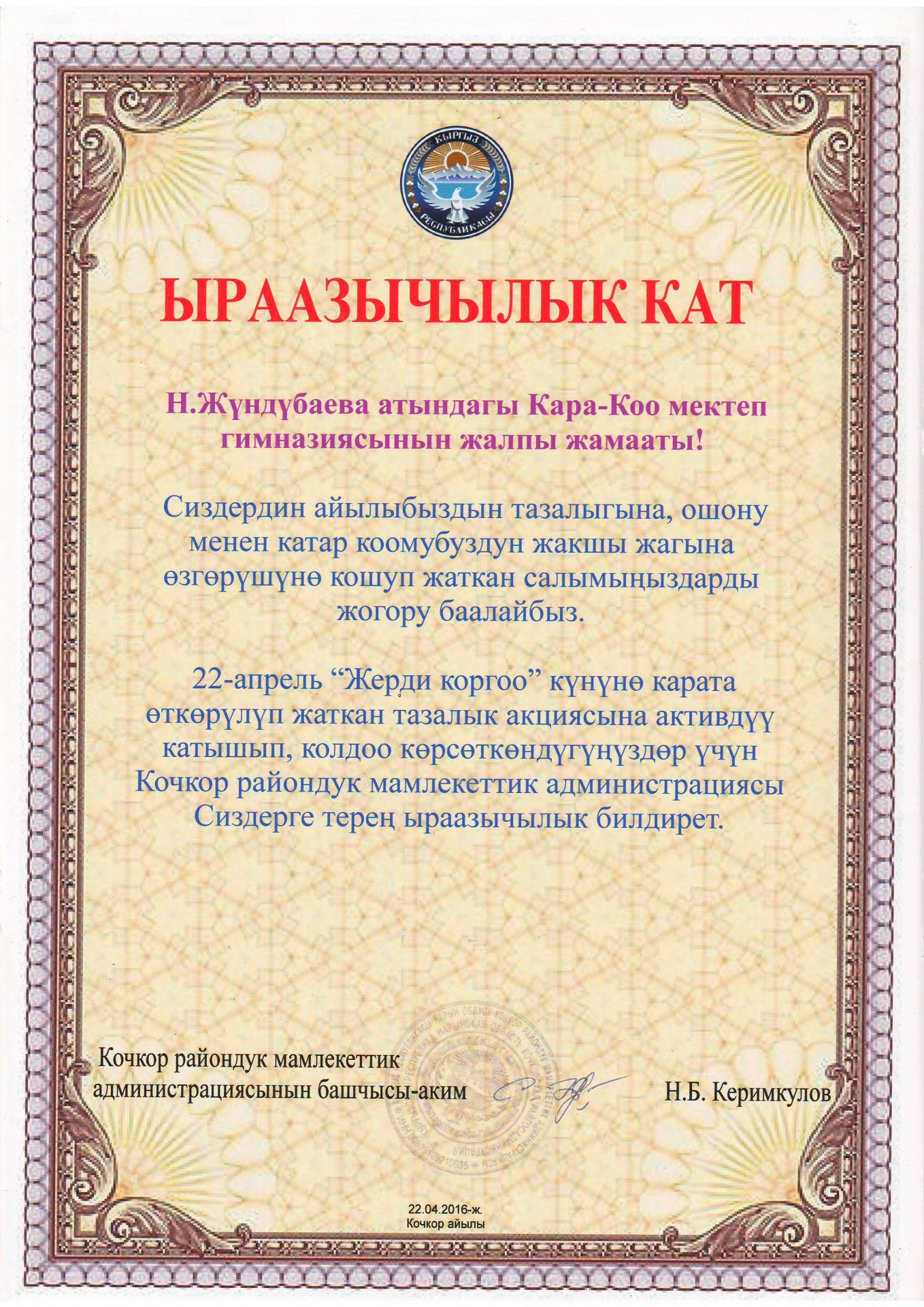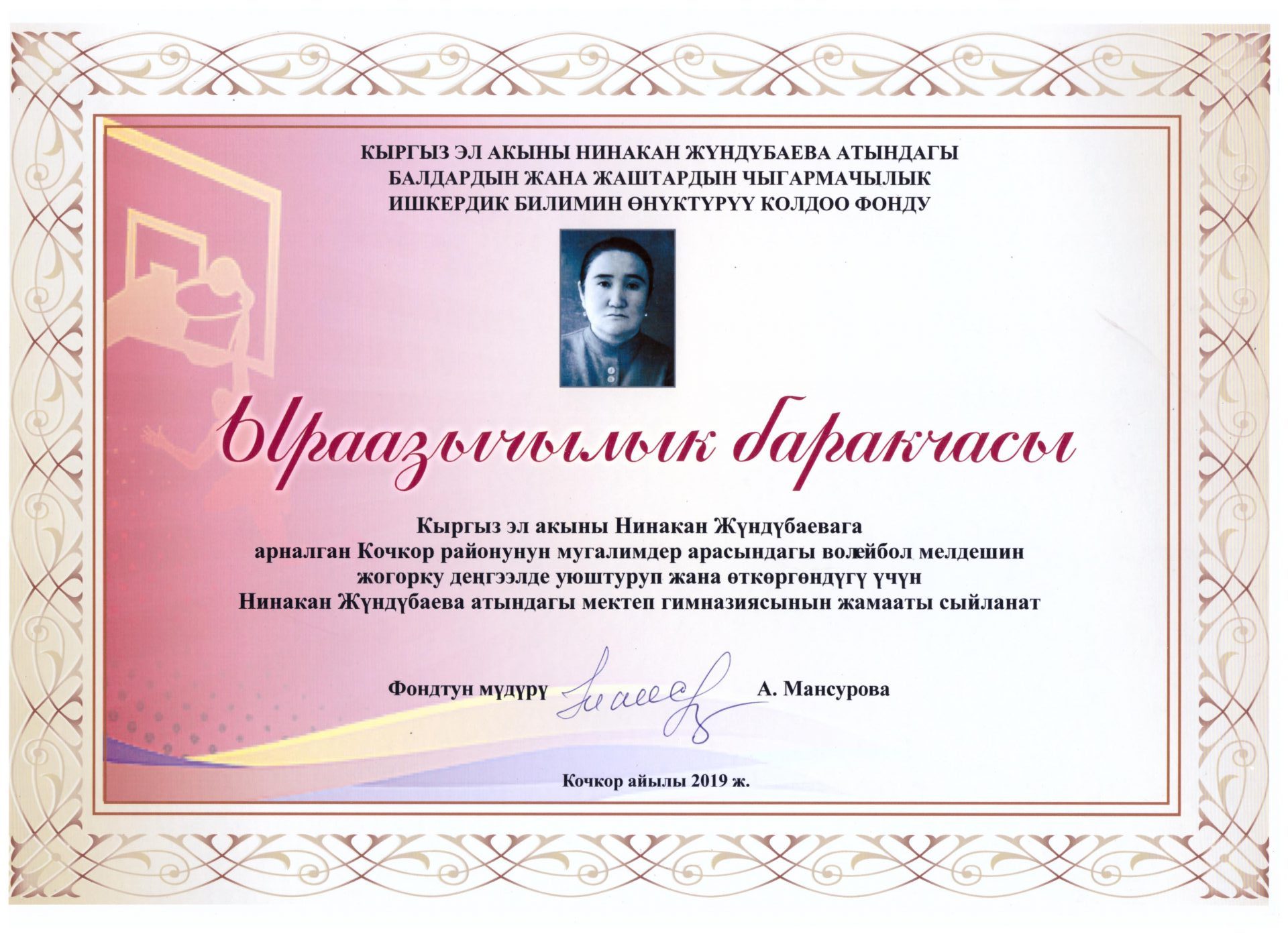 Мектеп - гимназиябыздын 10- классынын окуучу кыздарынан куралган Каныкей тобу быйылкы жылы "Манас таануу" сынагынын республикалык турунда 1- орунду багындырышты. Окуучуларды жетектеп сынакка даярдаган мугалими Сөлпүева Акак Солпуевна болду. Сынакка катышкан окуучуларыбыз баалуу белектер жана диплом менен сыйланышты.Биздин сыймыктуу окуучуларды, кыргыздын көөнөрбөс булагы болгон Манас эпосун окуп, изилдеп, сынактарда башкы орунду камсыздап жаткандыгы менен куттуктайбыз жана сыймыктанабыз.