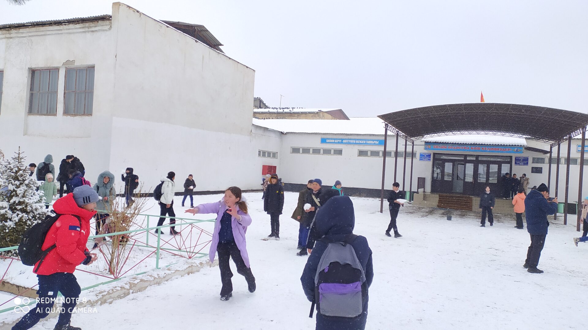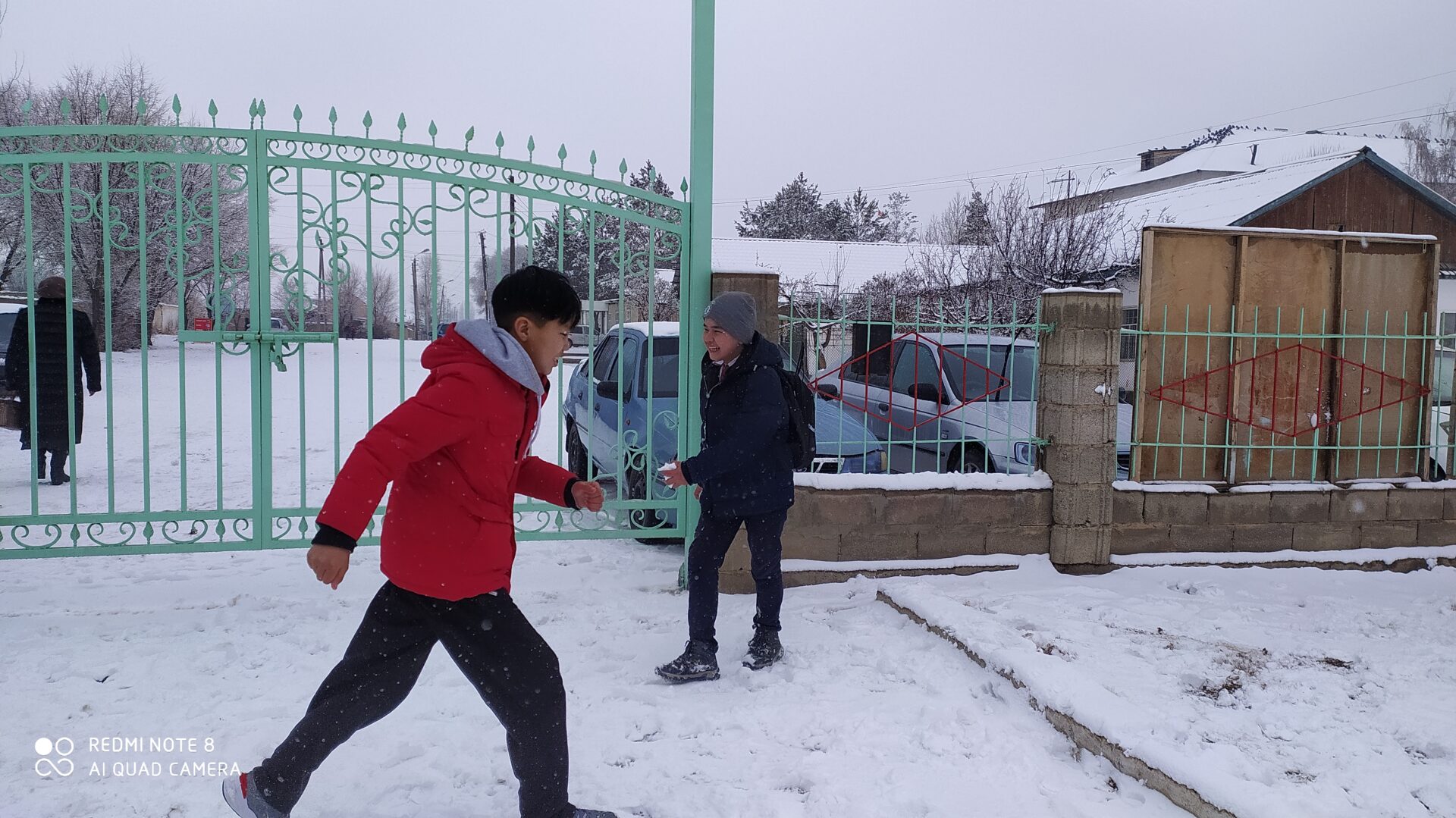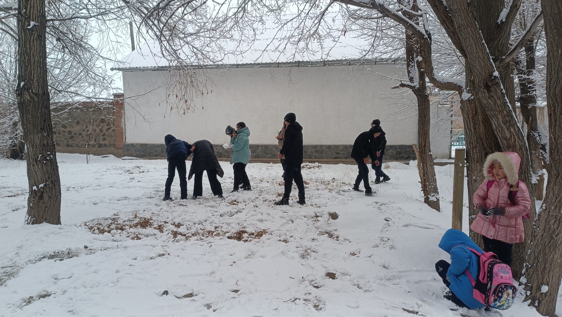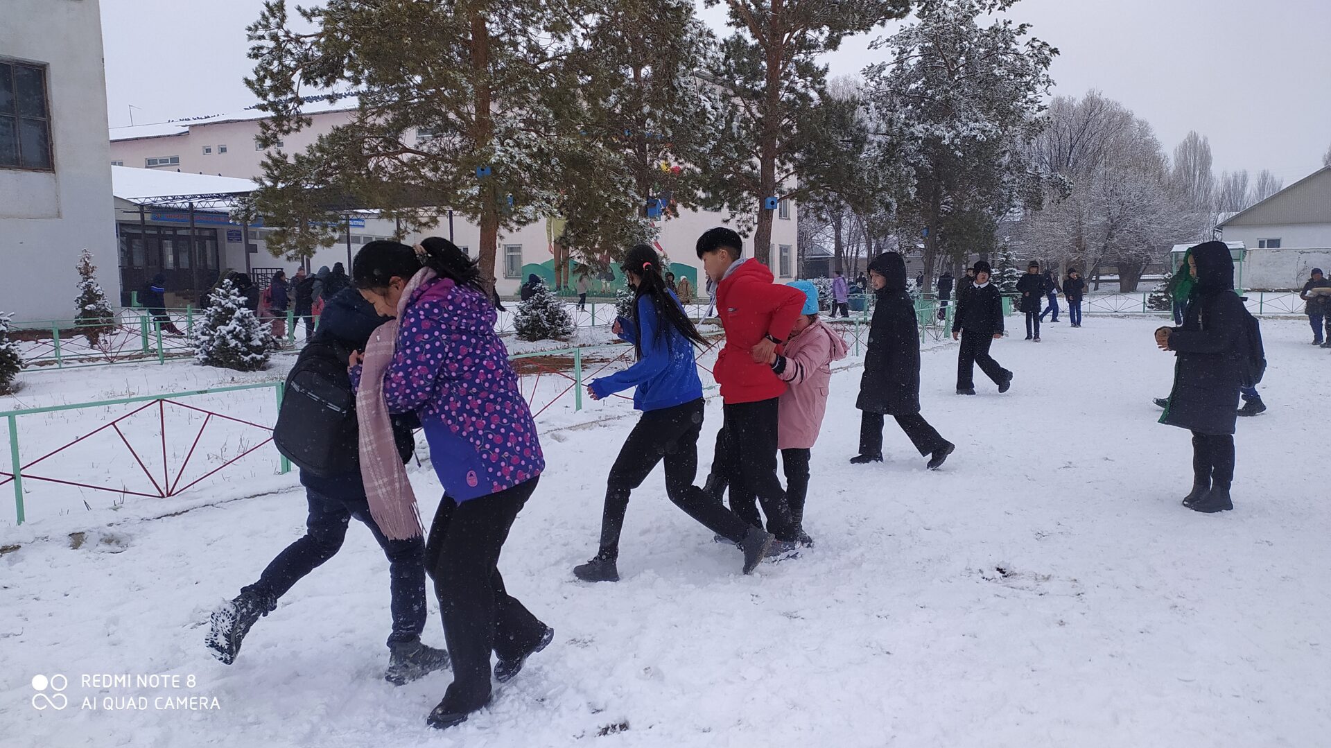 Баарына маалым болгондой, Кочкор өрөөнүнүн кышы карсыз. Быйыл кыштын биринчи кары бүгүн, 16-февралда гана жаады. Буга чейин кургак жана суук күндөр өтүп жаткан. Биринчи кар балдарга кубаныч тартуулап, алардын маанайы көтөрүңкү. Бүгүн мектеп окуучулары адатынча, бири-бирин карга жыгып, кар мыкчымасы менен чабышып ойношту. Албетте, окуучуларды агай-эжейлер көзөмөлдөп турушту.