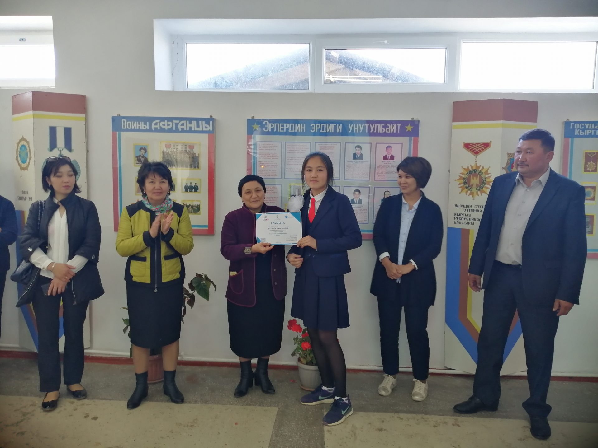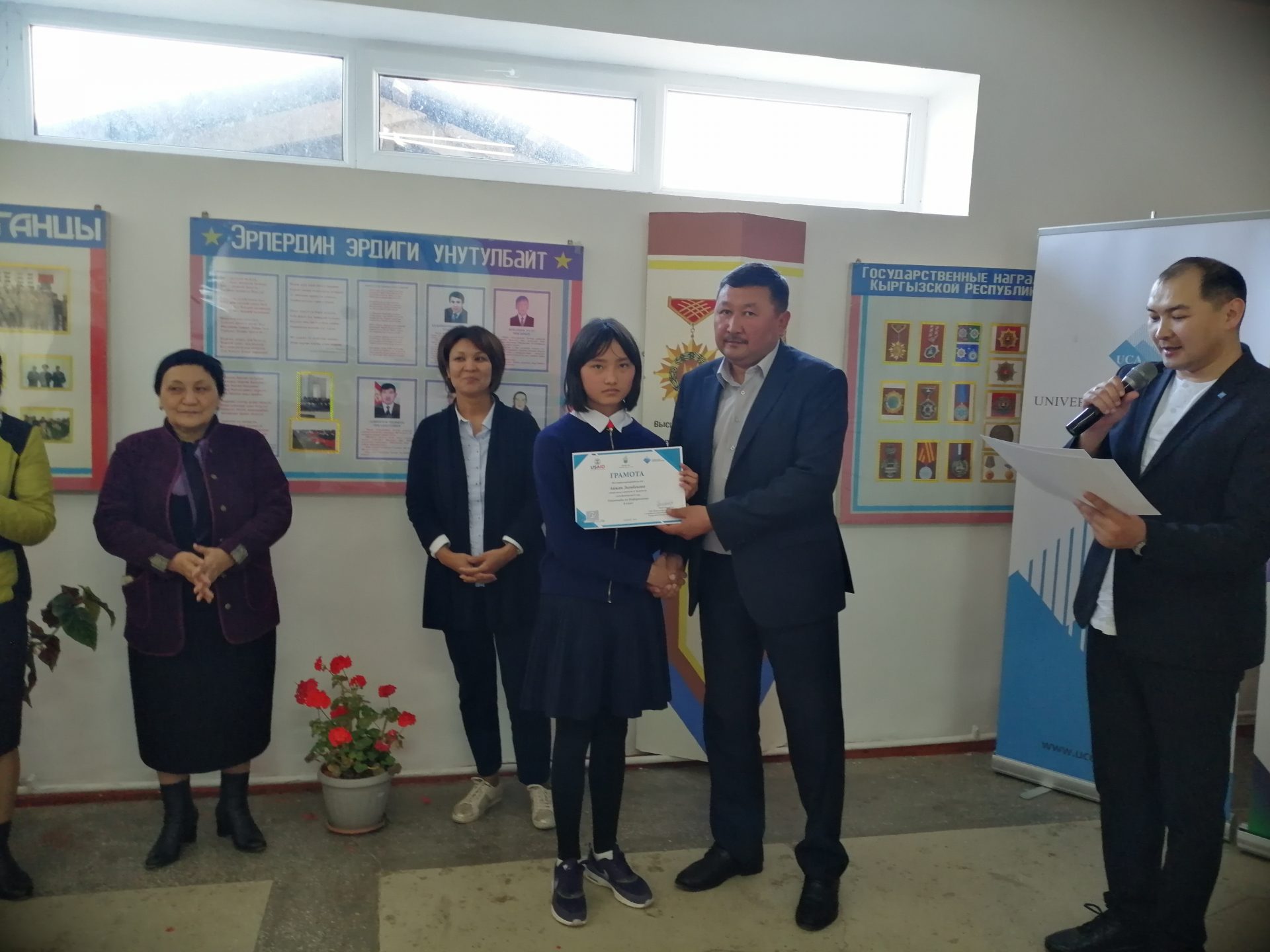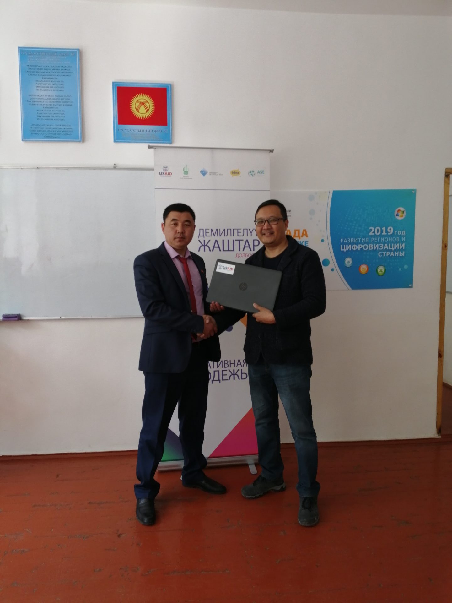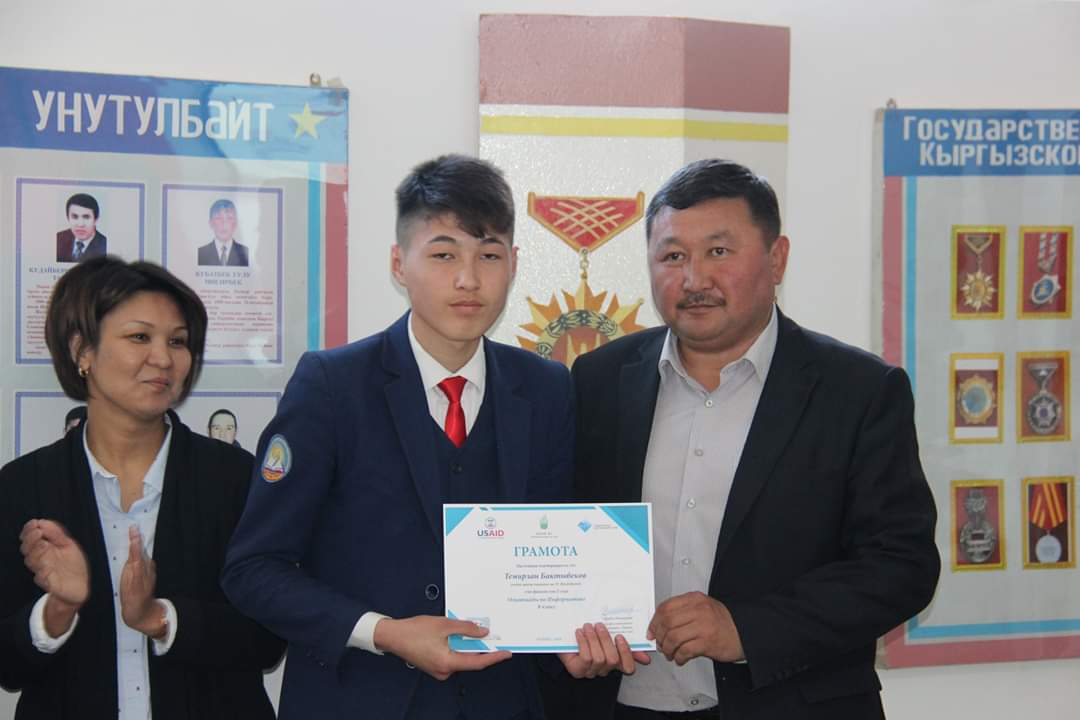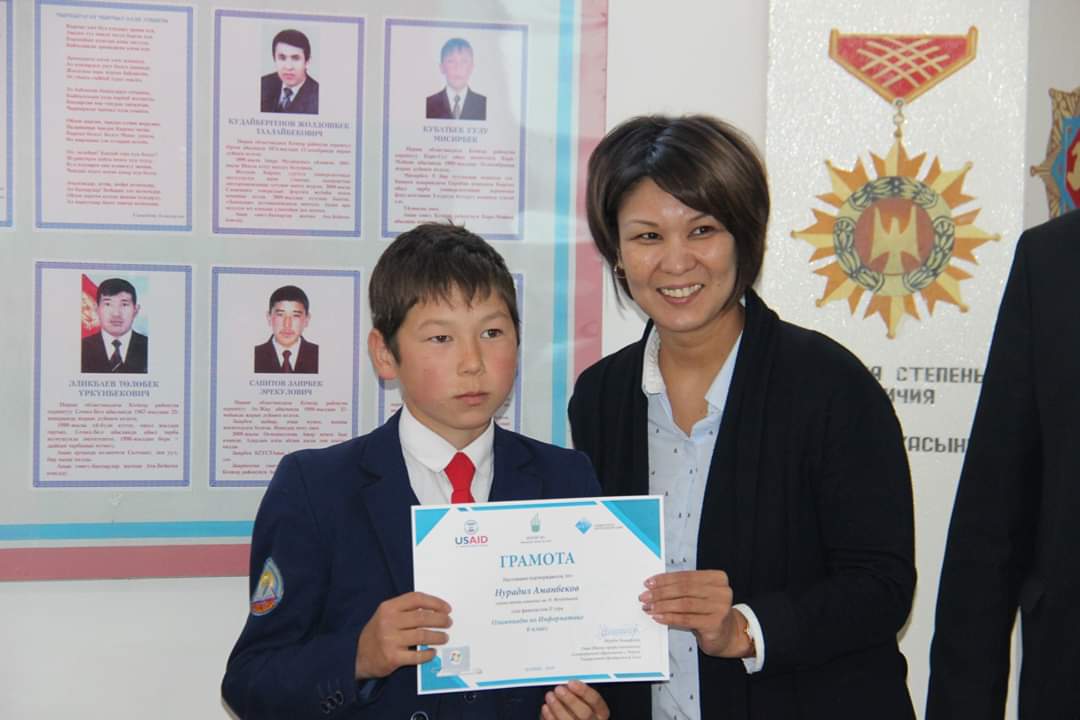 6-майда «2019-жыл – Кыргызстанда Региондорду өнүктүрүү жана өлкөнү санариптештирүү жылына» карата Борбордук Азия Университетинин (БАУ) Профессионалдык жана үзгүлтүксүз билим берүү (ПҮБМ) мектеби Нинакан Жүндүбаева мектеп-гимназиясына USAID-дин «Демилгелүү жаштар» долбоорунун алкагында «БАУнун ПҮБМдагы ICDL»- Эл аралык компьютердик күбөлүк программасынын тестирлөө борборун ачты. Информатика сабагы боюнча олимпиаданын жыйынтыгы менен ийгиликтүү өткөн окуучуларга грамота тапшырышты. Аталган долбоордун алкагында 3 ноутбук жана Wi-Fi роутер менен жабдып беришти.