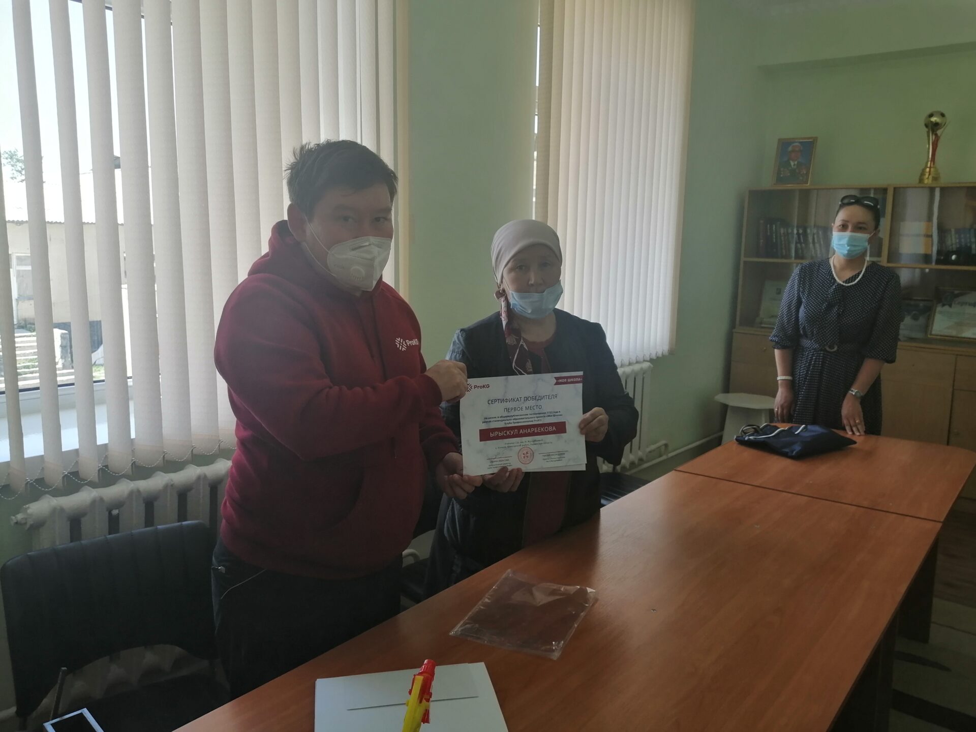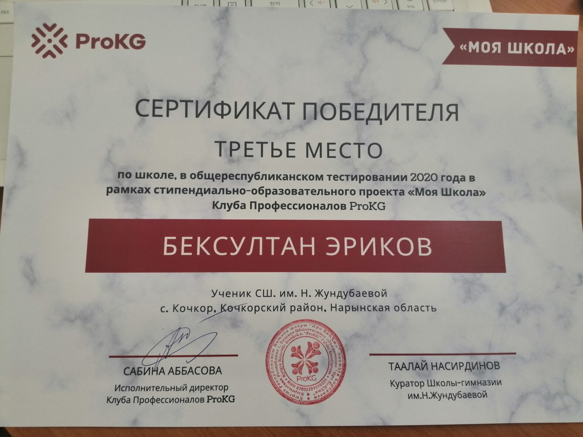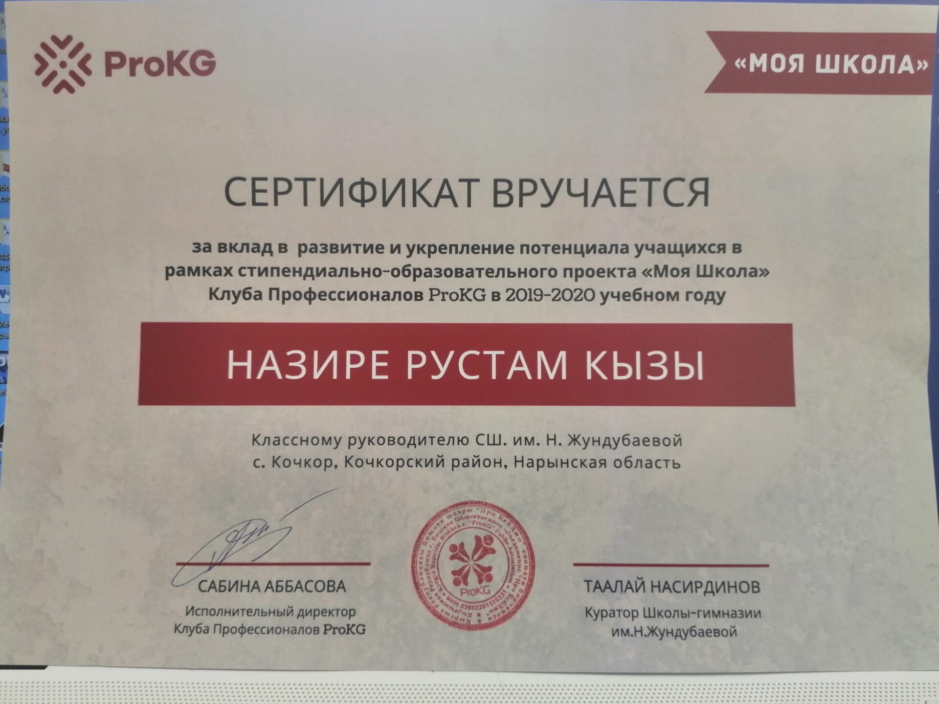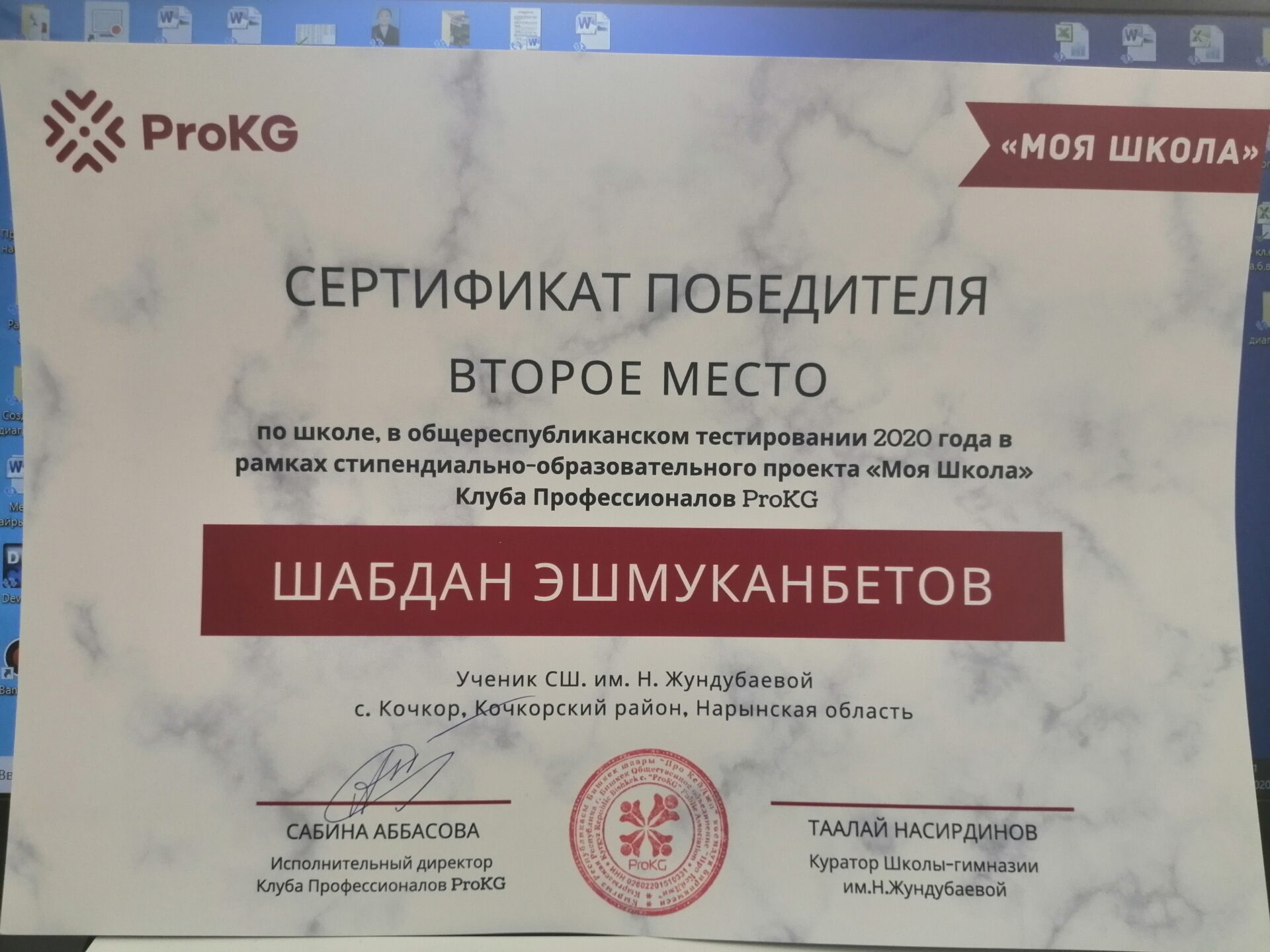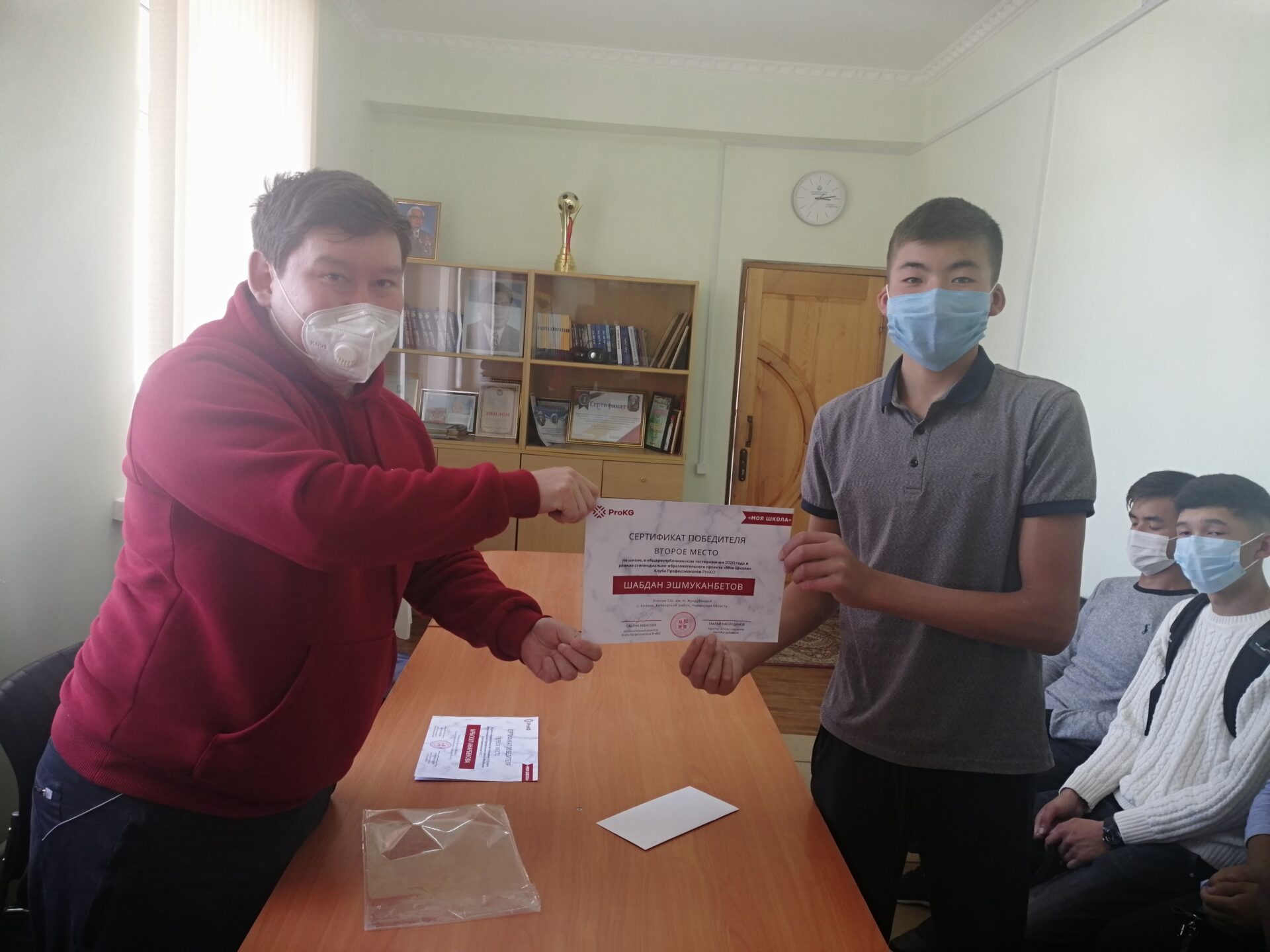 8-август «Менин мектебим» долбоорунун алкагында ProKG клубунун мүчөсү, биздин мектептин бүтүрүүчүсү Насирдинов Таалай ЖРТ алдыңкы балл алган окуучуларга сертификаттарды жана ошондой эле стипендияларды тапшырып кетти. Эскерте кетсек бул долбоорду ProKg клубу жалпы республикалык тестирлөөдөн жогорку балл алган окуучуларга 10 жылдан бери стипендия берип келет.