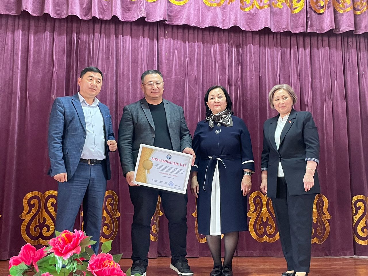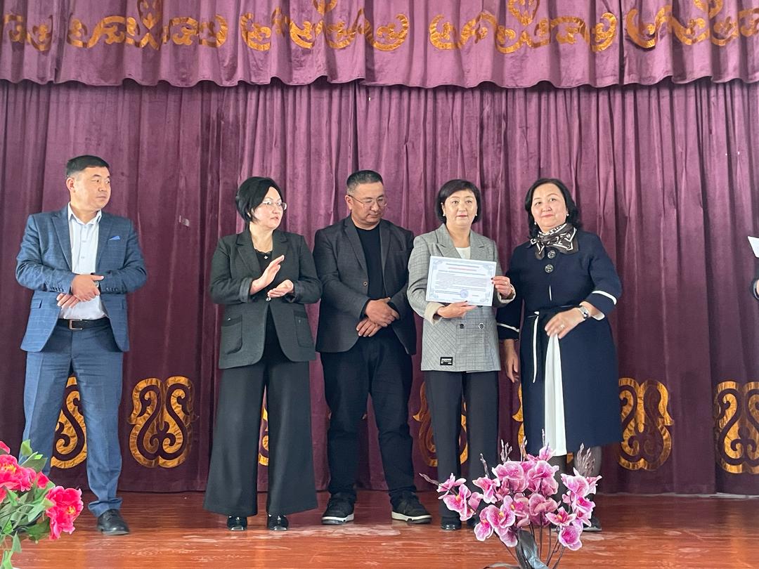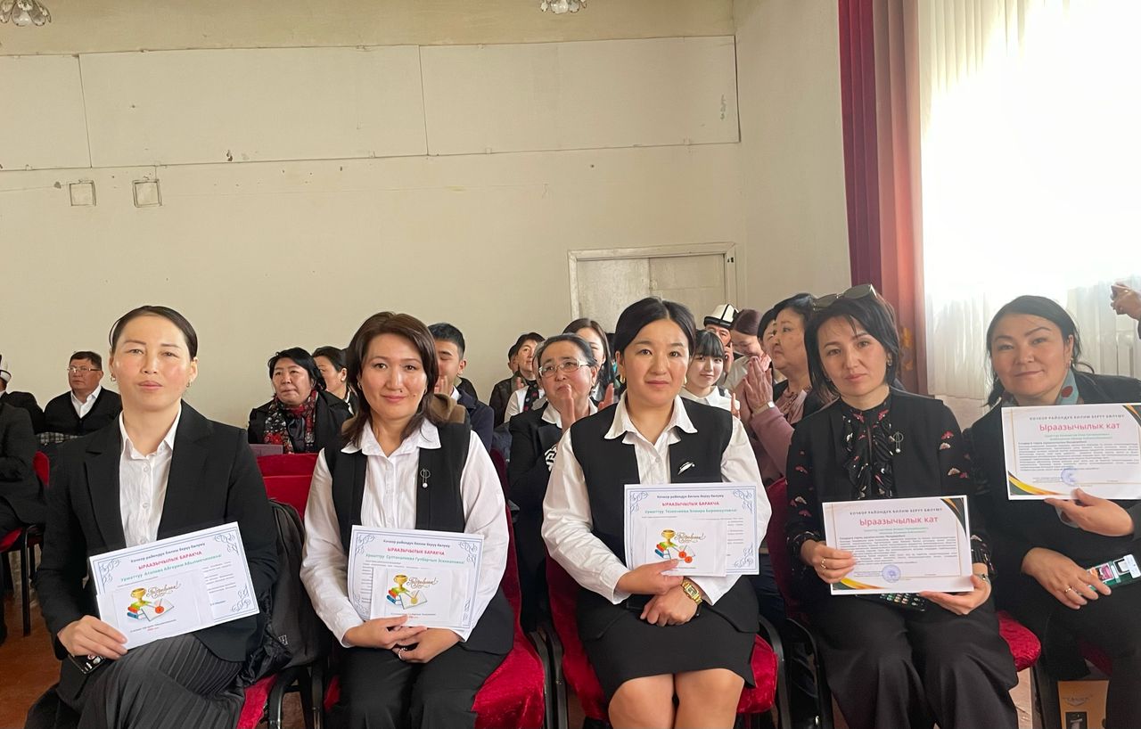Ошондой эле, районубуздун билим берүү бөлүмүнүн мурунку башчысы, учурда Нарын шаарынын билим берүү бөлүмүнүн жетектеген Турсуналиев Тынчтык агайга демөөрчүлөрдү таап, сыйлоо аземинин өтүшүнө кошкон чоң салымы үчүн ыраазычылык билдиребиз.