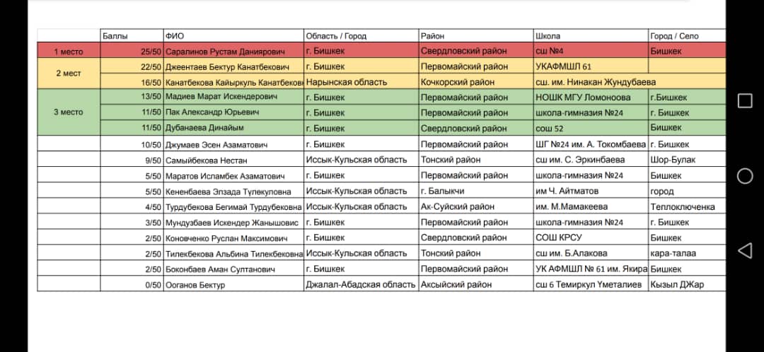 Илимдүү адам ар бир жерде өзүн ийгиликтүү көрсөтө алат. Мектебибиздин быйылкы жылкы бүтүрүүчүсү 11-в класстын окуучусу Канатбекова Кайыркүл 2022-жылдын 5-январында математика сабагы боюнча республикалык денгээлде Бишкек шаарында өткөрүлгөн Кыргыз-Швед олимпиадасында 2-орунду камсыздап келип баардыгыбызды кубандырды.