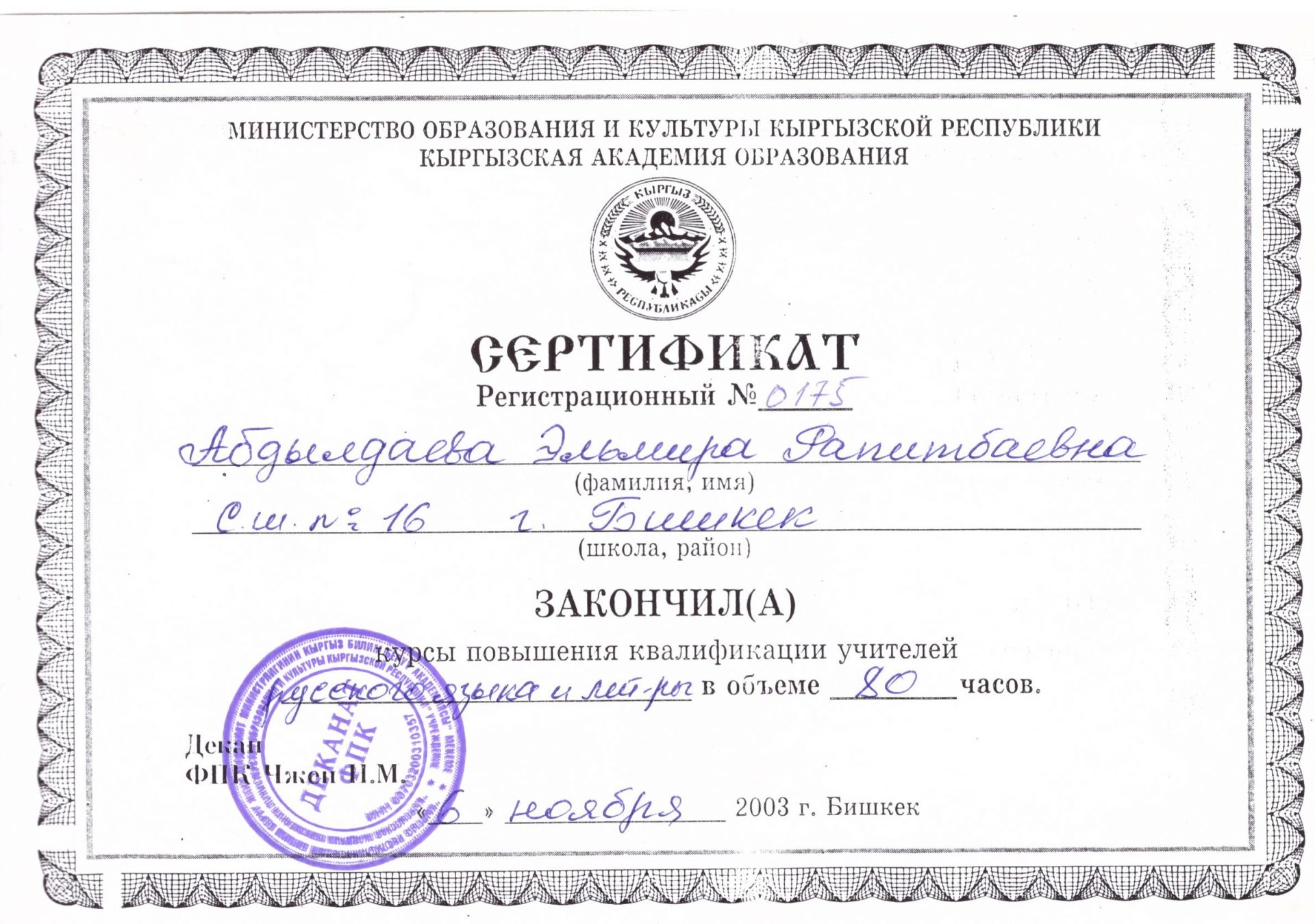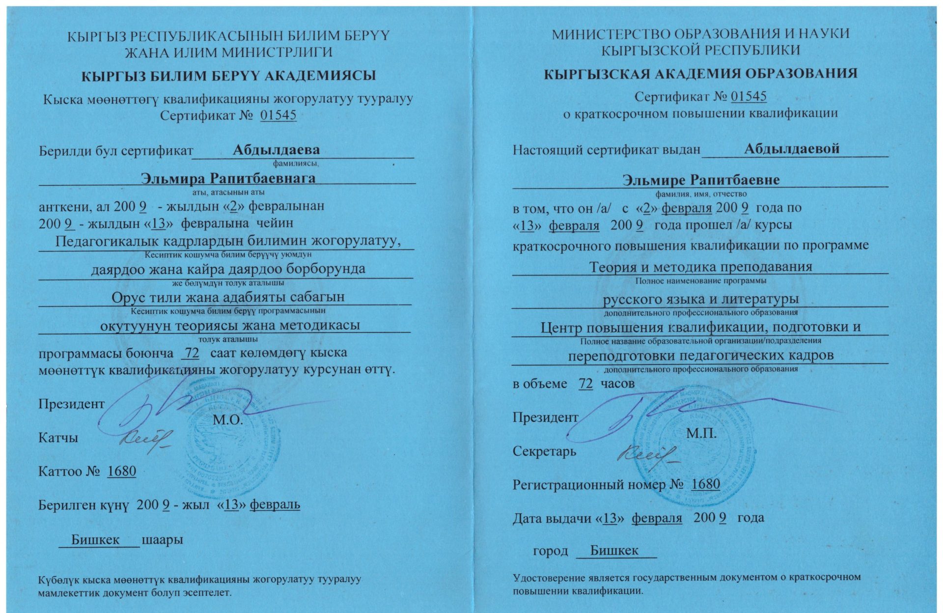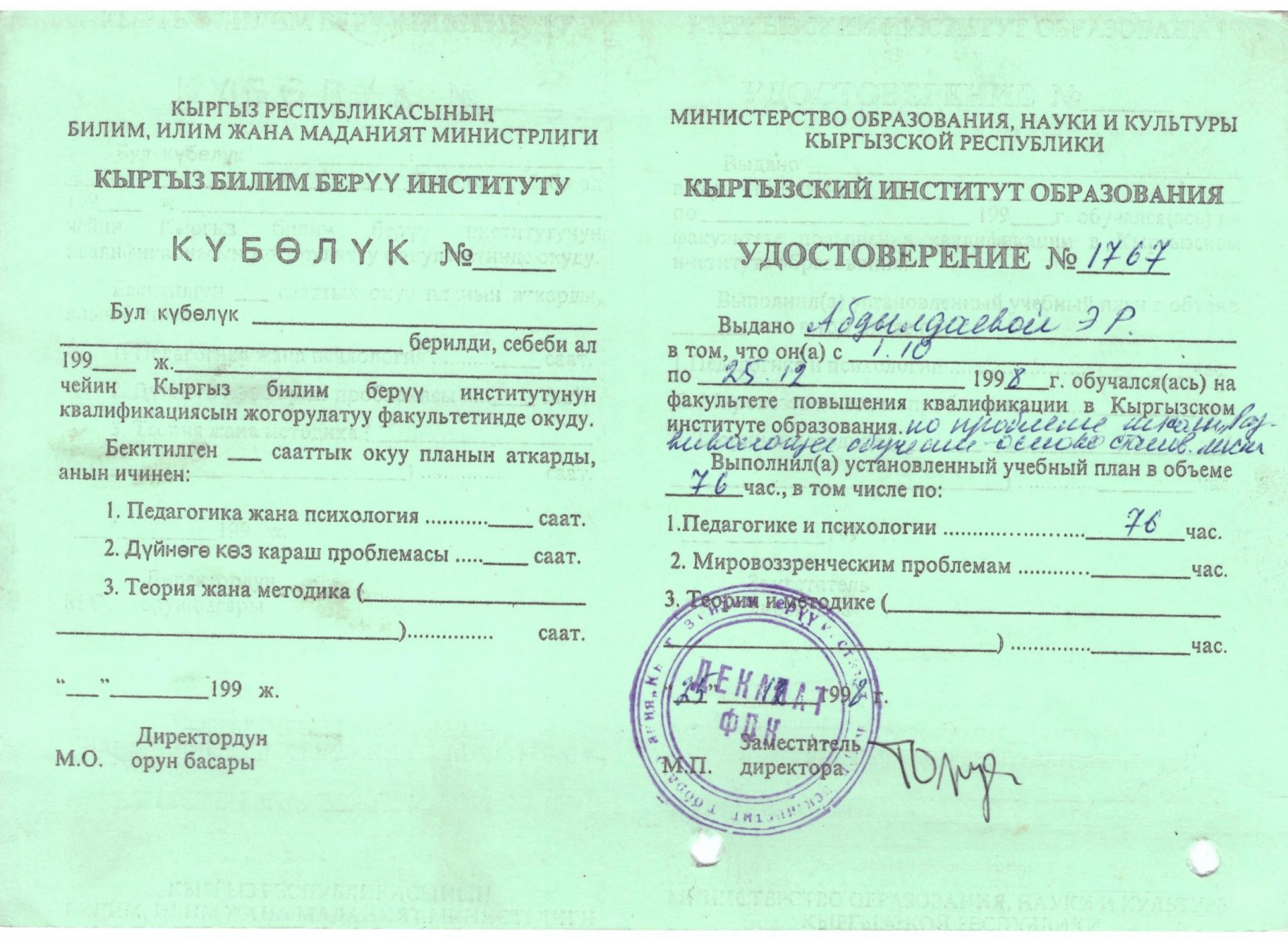 | Өз билимин жогорулатуу | - Семинар повышения квалификации, 16.04.2012г.