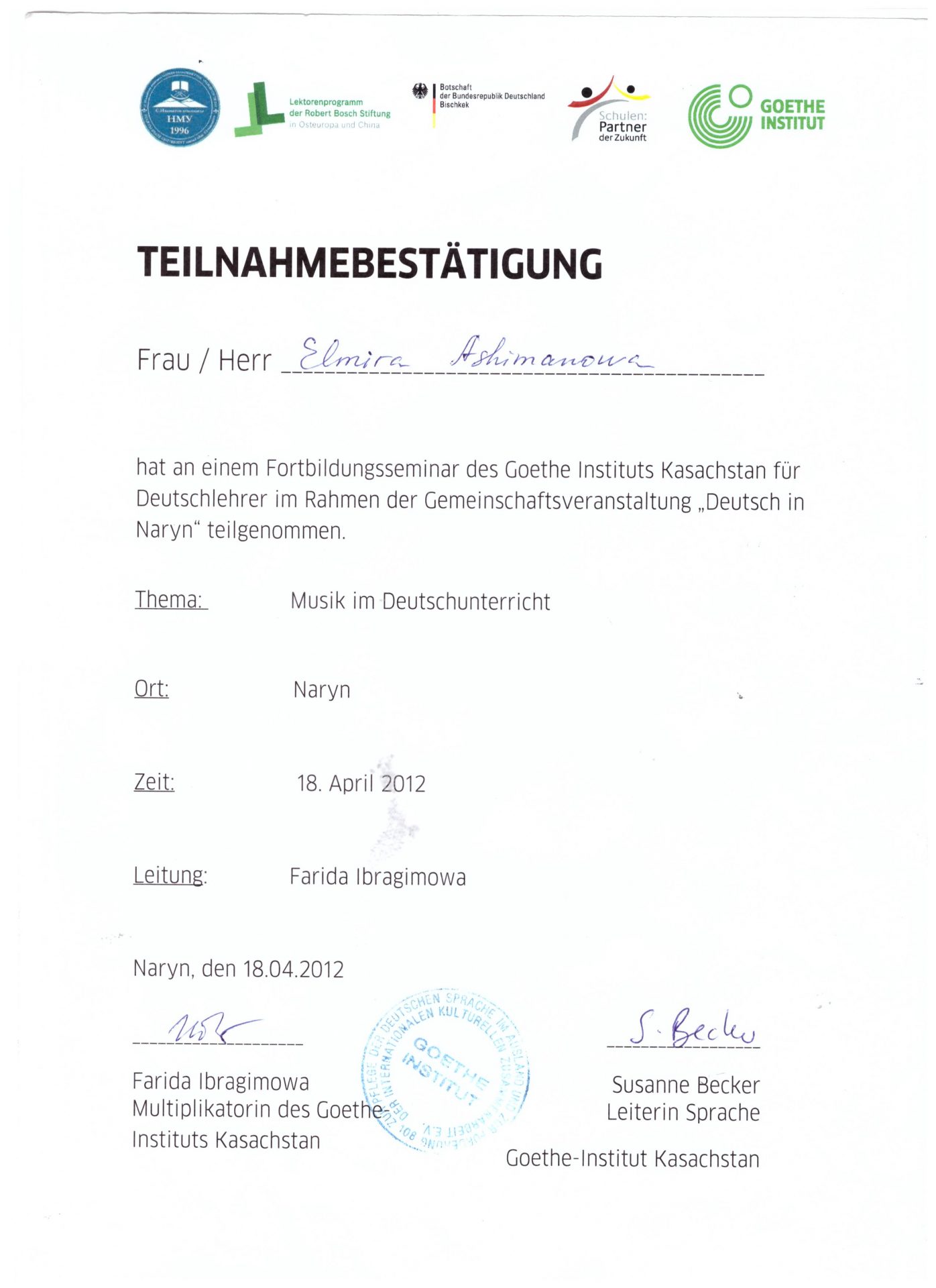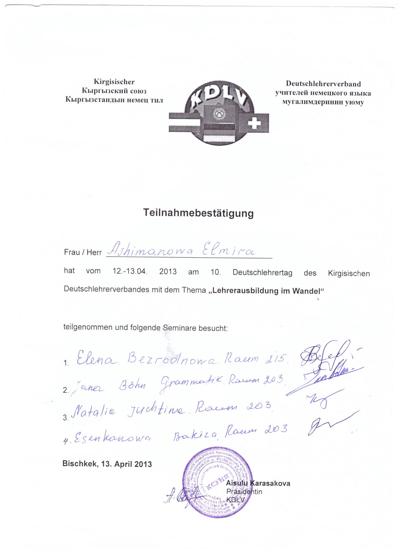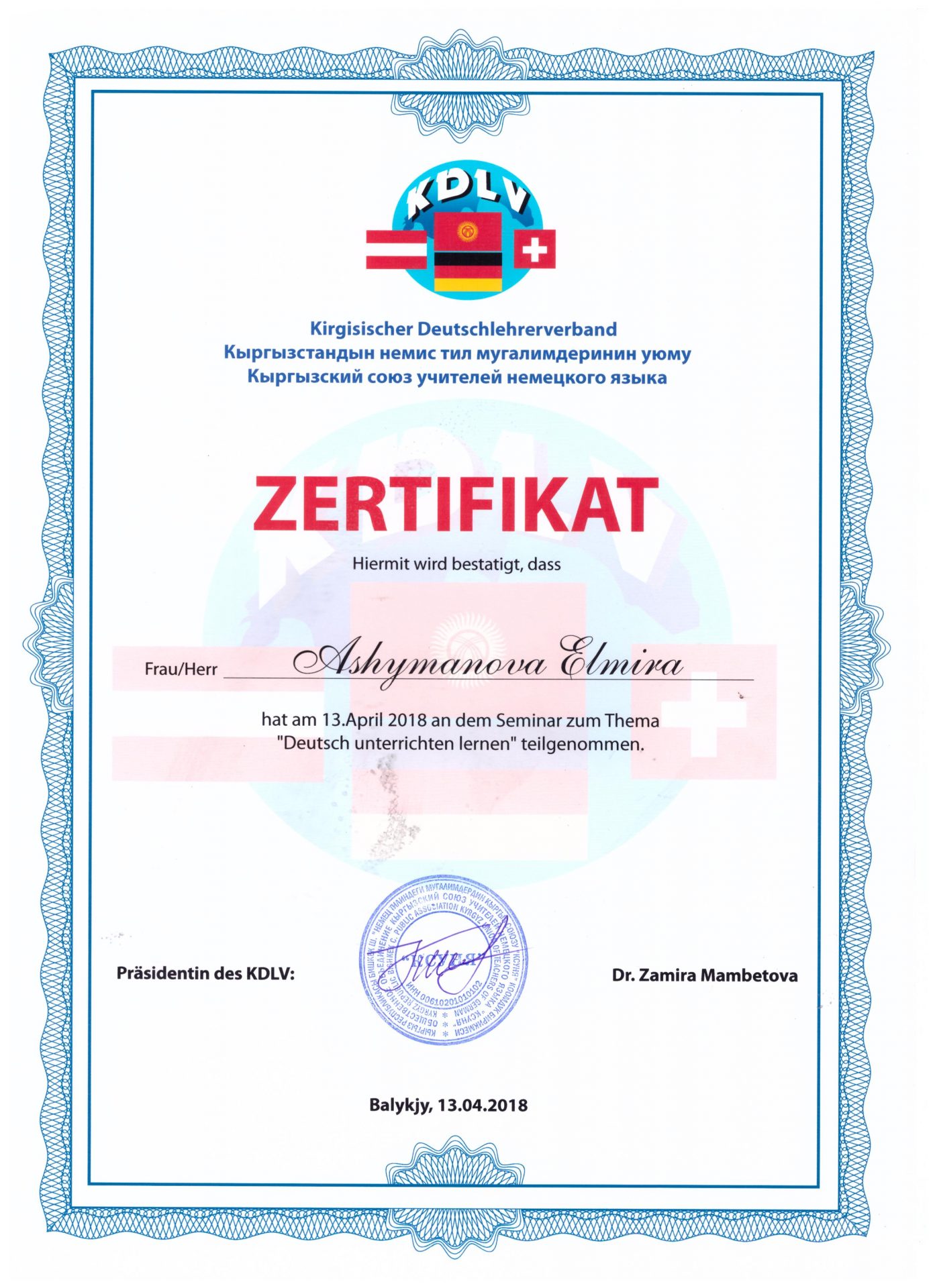| Өз билимин жогорулатуу | - «Deutsch-eine sprache mit zukunft», 26-27.04.2019.