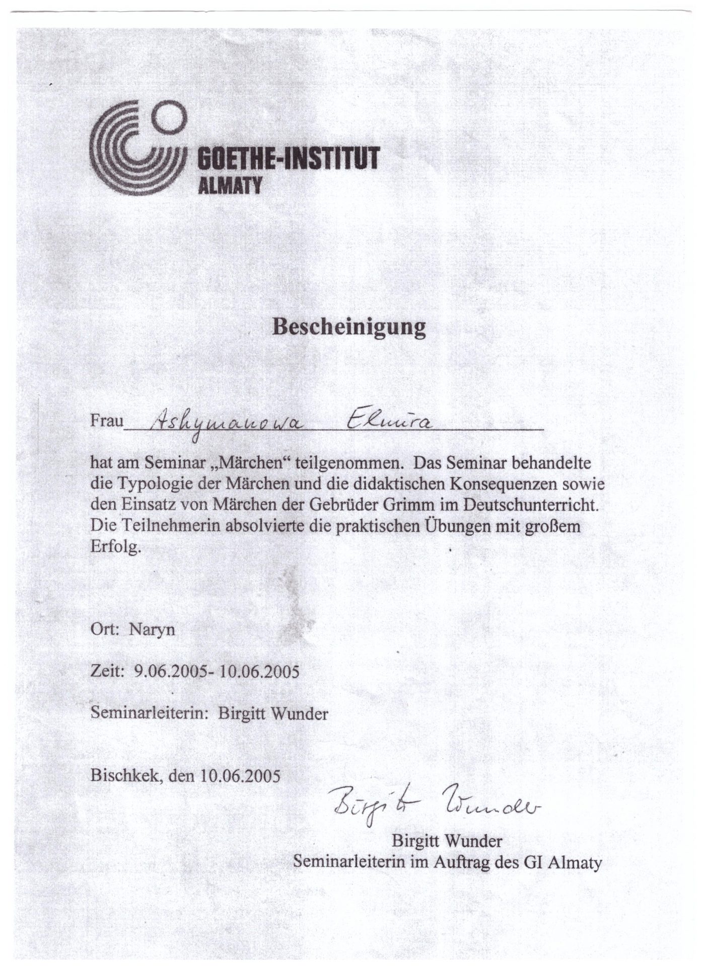 - «Typologie der Marchen und die didaktischen», 9.06.2005-10.06.2005.